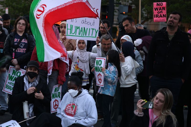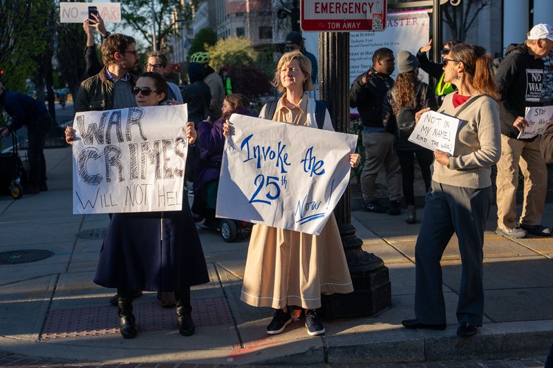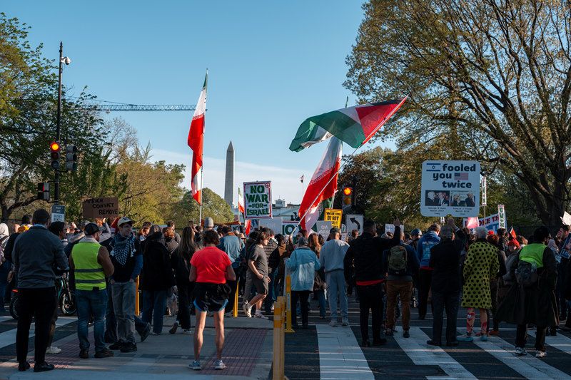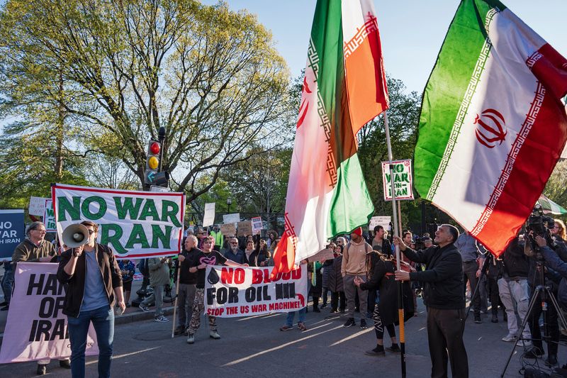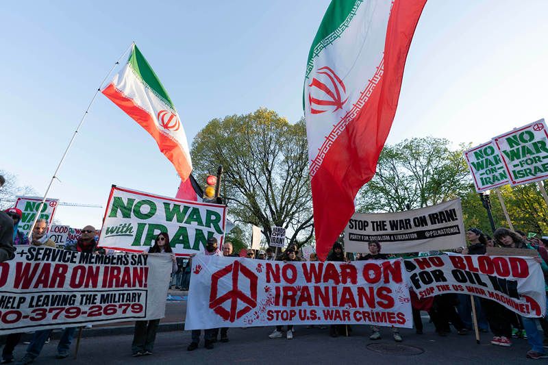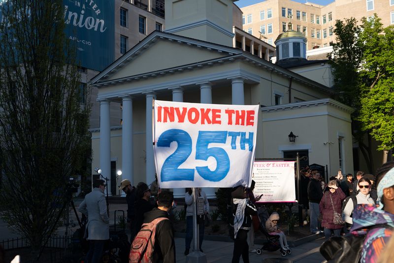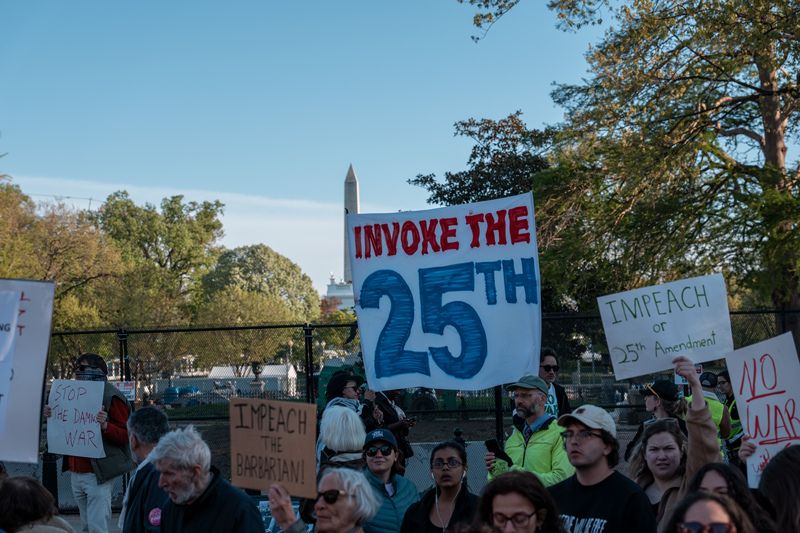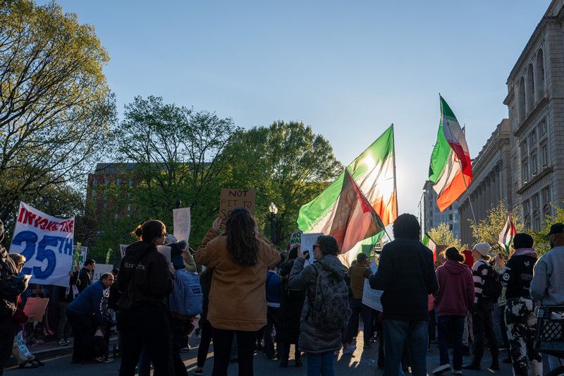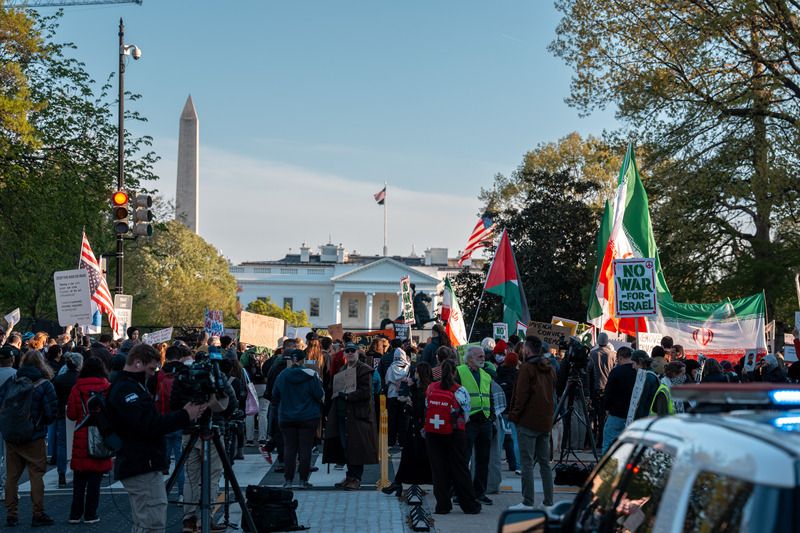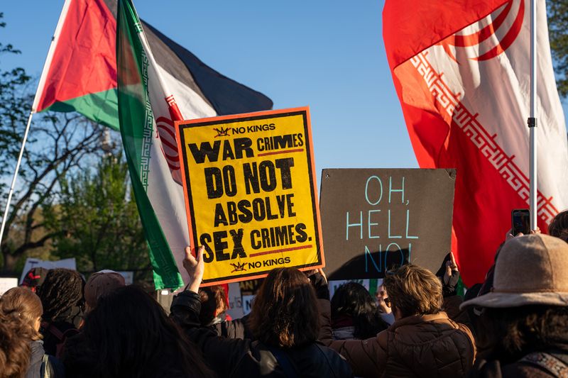 当地时间2026年4月7日,美国华盛顿特区,抗议者在白宫附近举行抗议活动。