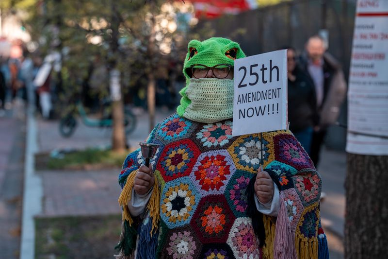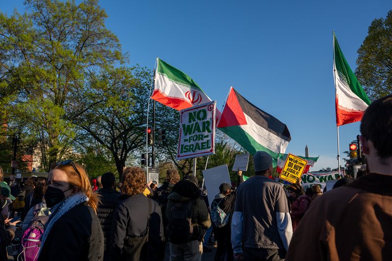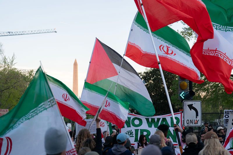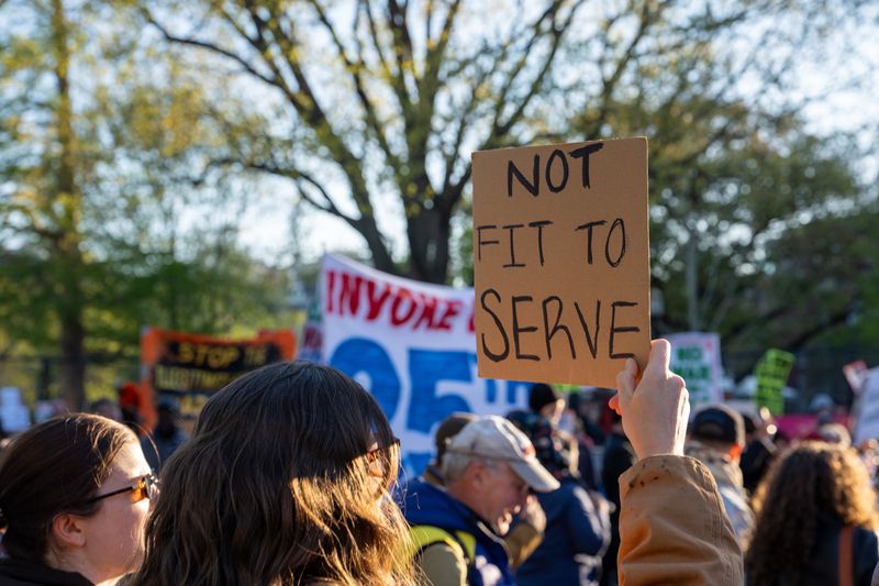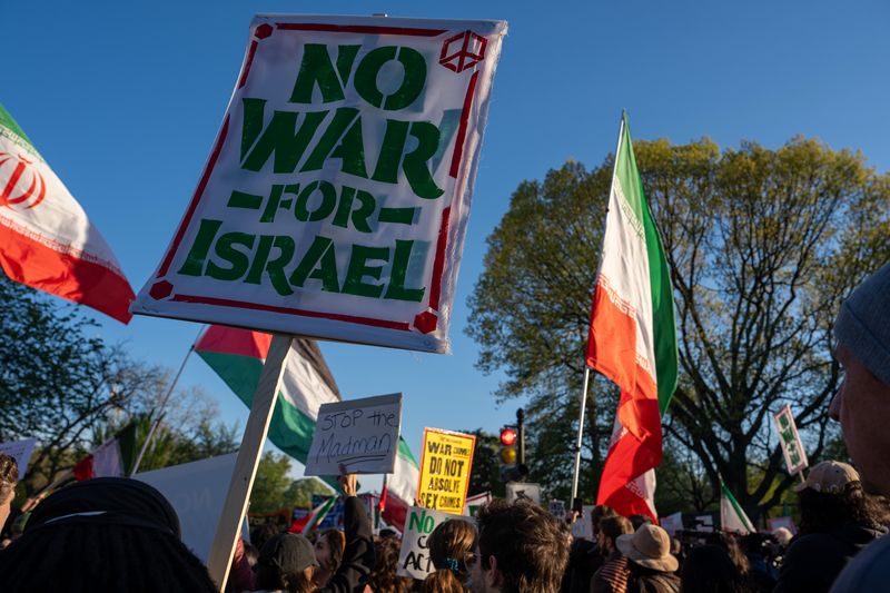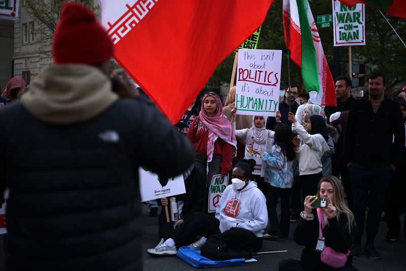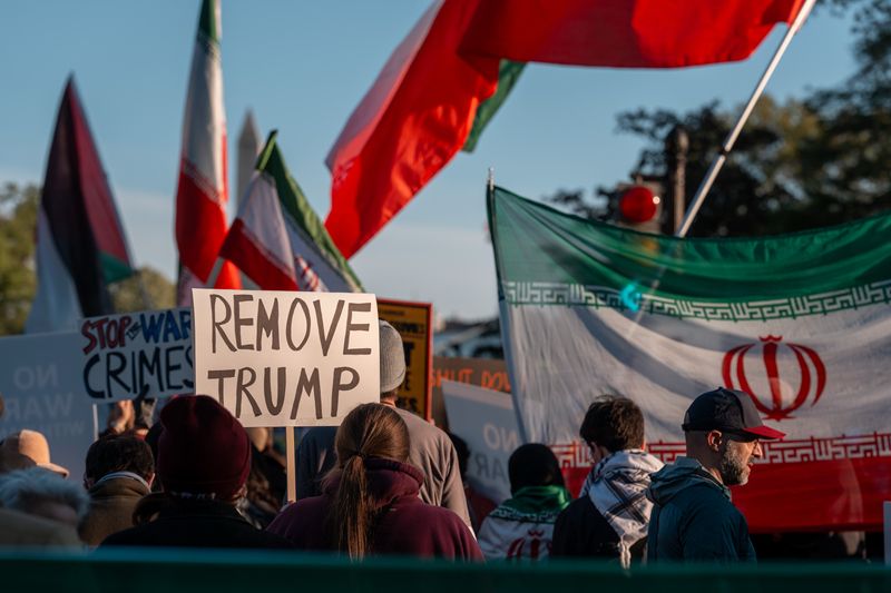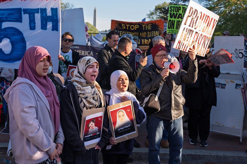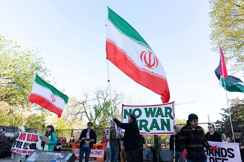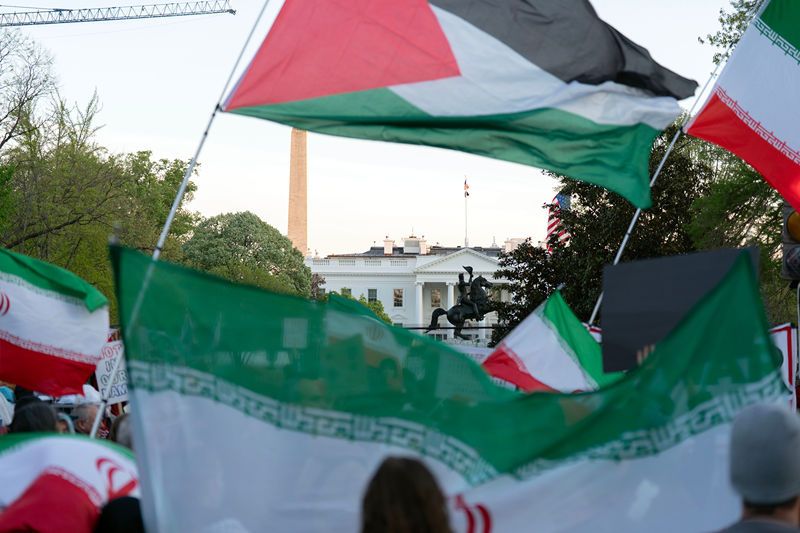 当地时间2026年4月7日,美国华盛顿特区,抗议者在白宫附近举行抗议活动。