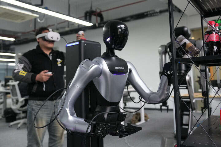 技术人员在浙江宁波博登智能科技有限公司调试人形机器人(2026年3月26日摄)。新华社记者 黄宗治 摄
