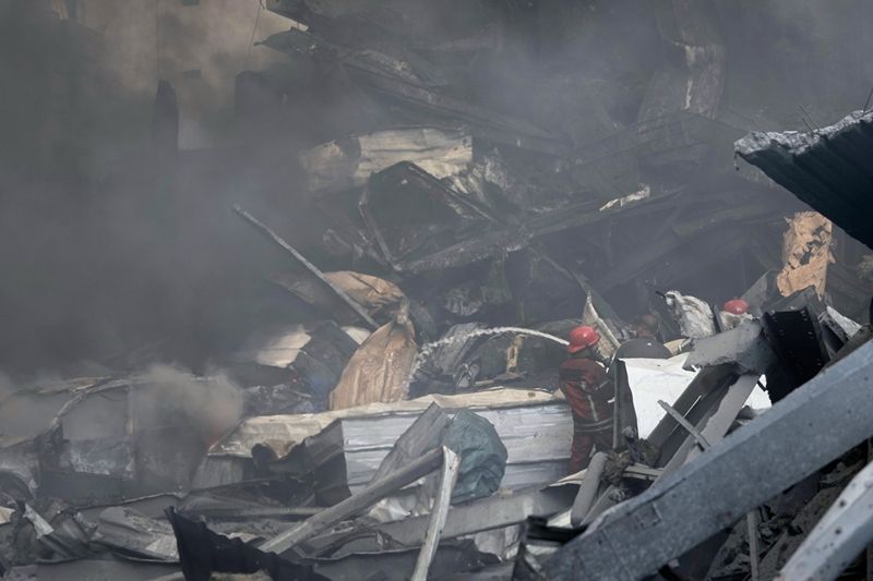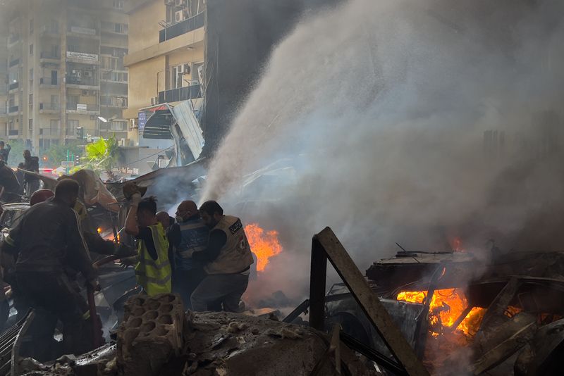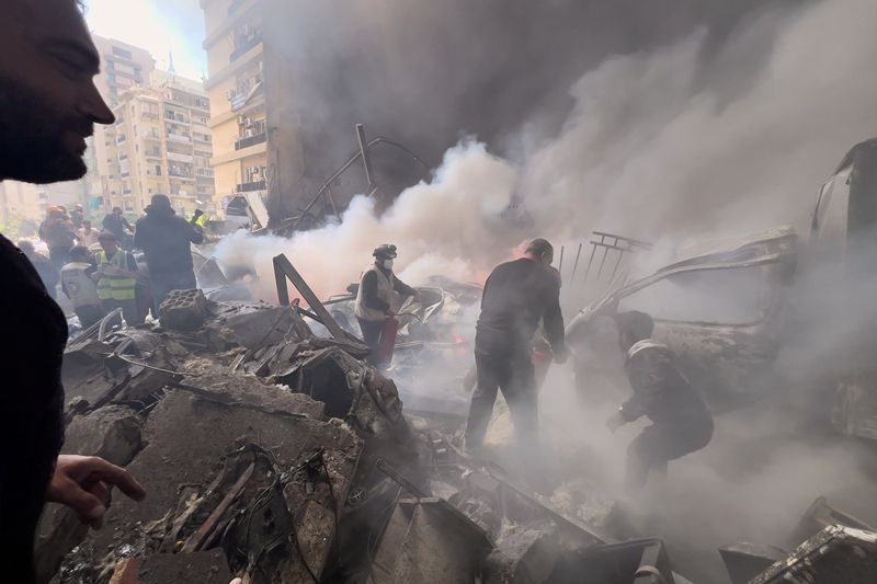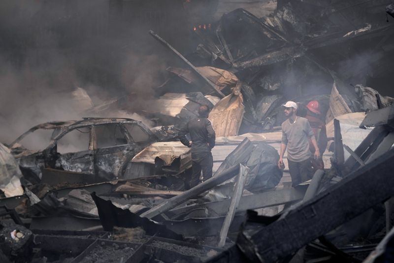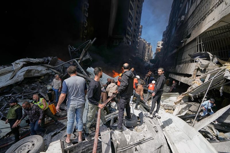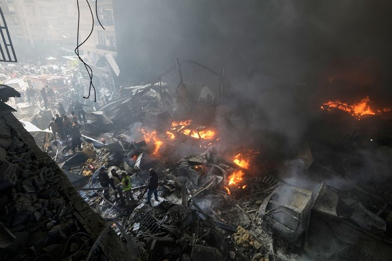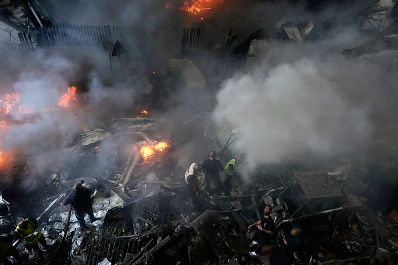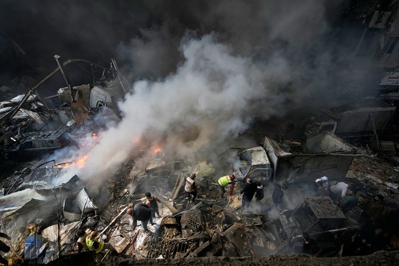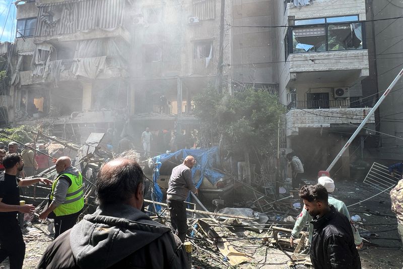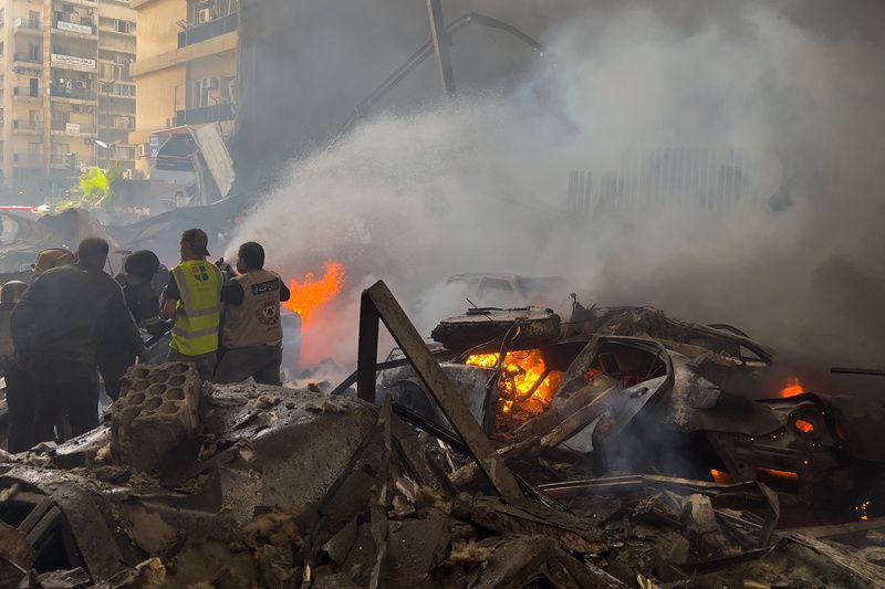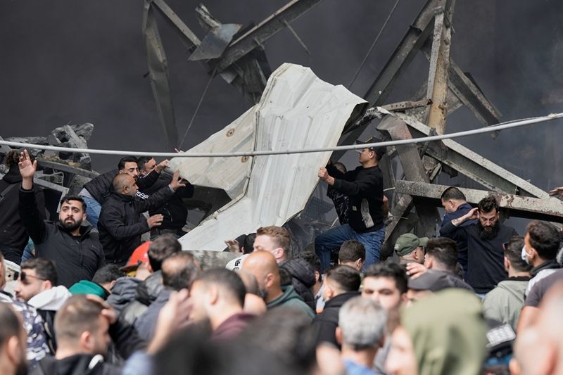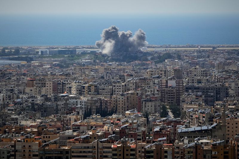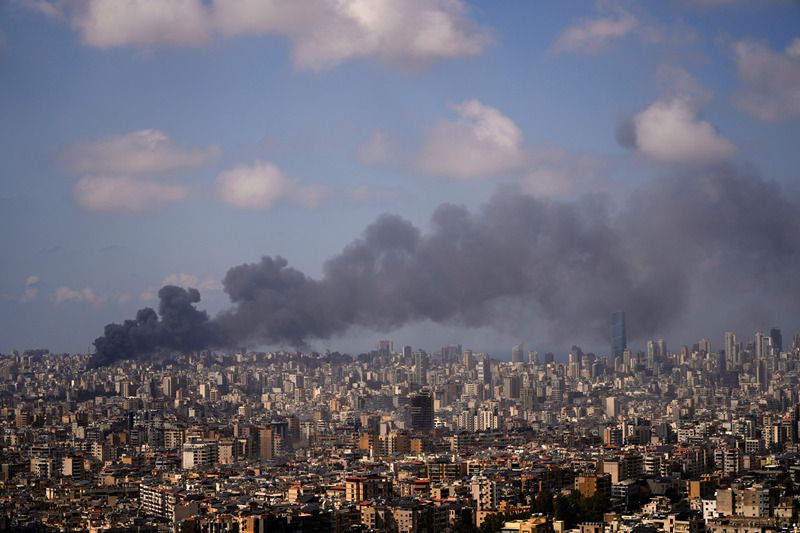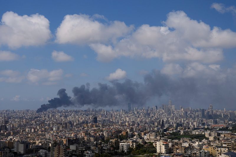 当地时间2026年4月8日14时,以色列空袭黎巴嫩首都贝鲁特,爆炸后浓烟升起。
