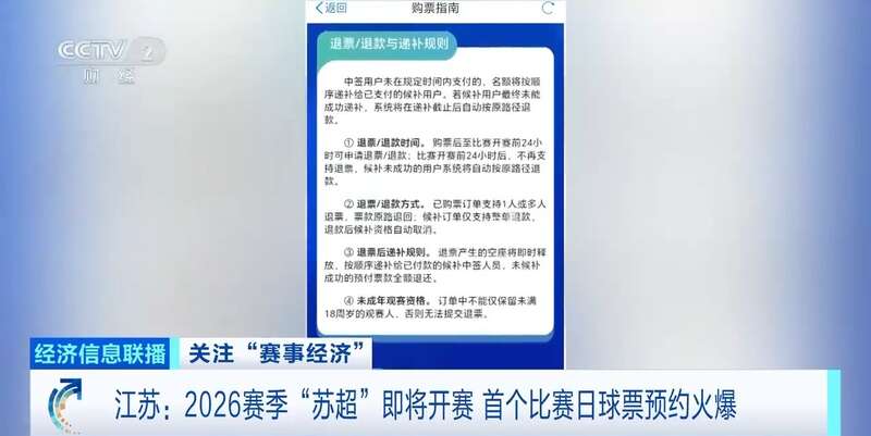记者从组委会了解到,本轮赛事预约热度火爆,仅扬州主场的预约报名人数就达到10万人。为了更好满足球迷观赛需求,今年票务平台新增退票和自动候补机制,开赛前24小时可自由退票,退票空座将递补给候补人员。这一优化是平台根据去年2万多条球迷诉求推出的便民举措。