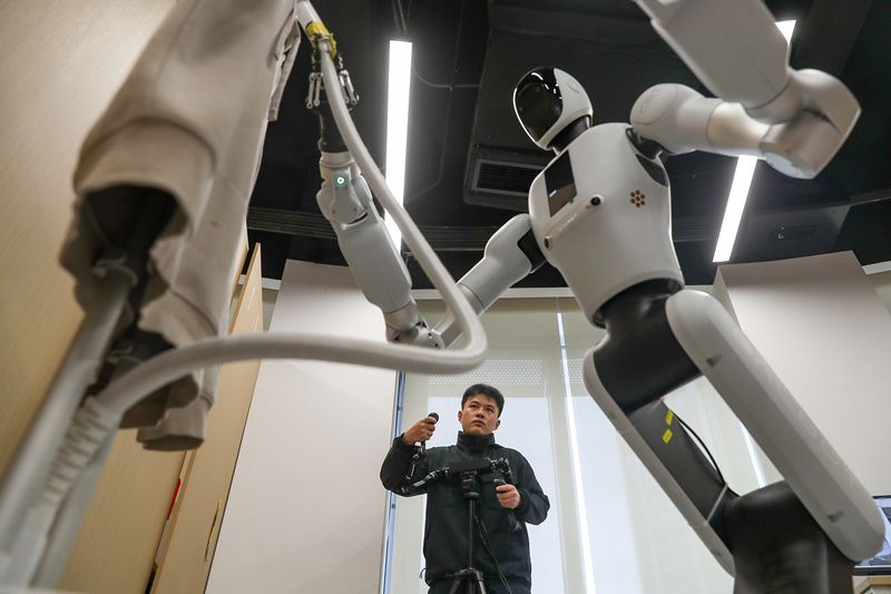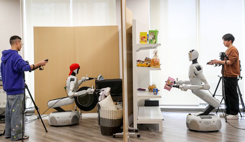 2026年4月8日,四川省宜宾市高铁南片区生态科技创新园的西南具身智能训练中心,一群“00 后” 技术人员正在各类场景中训练机器人。