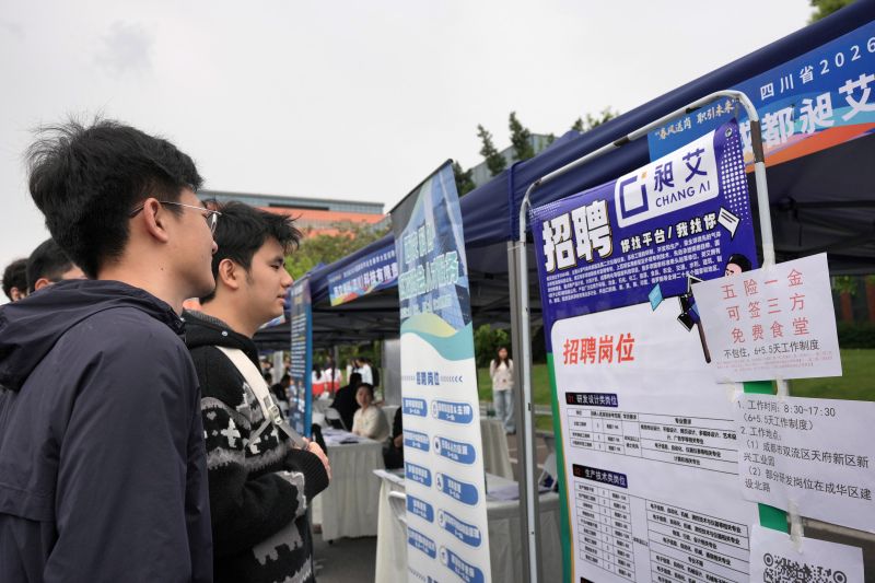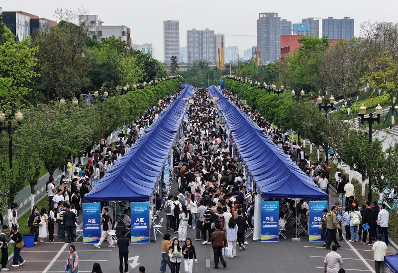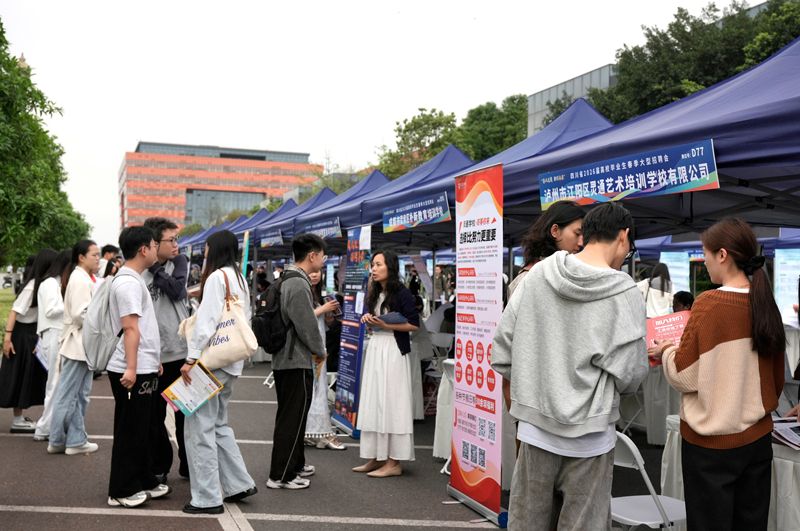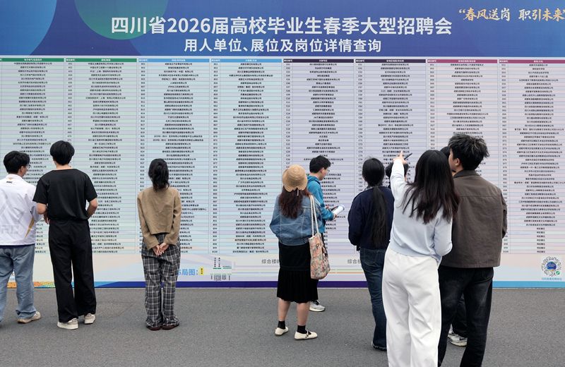 2026年4月10日,四川成都,“春风送岗 职引未来”四川省2026届高校毕业生春季大型招聘会在成都大学举办。本次招聘会由四川省教育厅主办,成都大学、四川省高校学生信息咨询与就业指导中心等单位承办,为四川省2026届高校毕业生与优质用人单位搭建起高效对接、双向奔赴的就业桥梁。 中新社记者 安源 摄