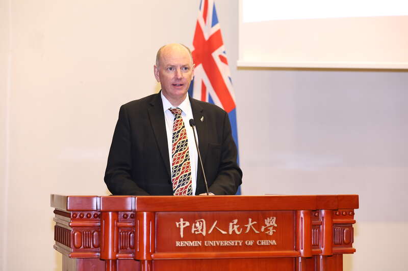 中国青年报客户端讯(中青报·中青网记者 赵安琪)4月9日,新西兰驻华大使乔文博做客中国人民大学重阳金融研究院区域国别论坛之“大使讲坛”第十六场,围绕“新西兰与中国:全球变化中的关系”发表主题演讲。他表示,新西兰是中国经济崛起的重要受益者,新方坚信通过持续、公开、坦诚的对话,新中两国必将有效应对区域及全球面临的各项挑战。