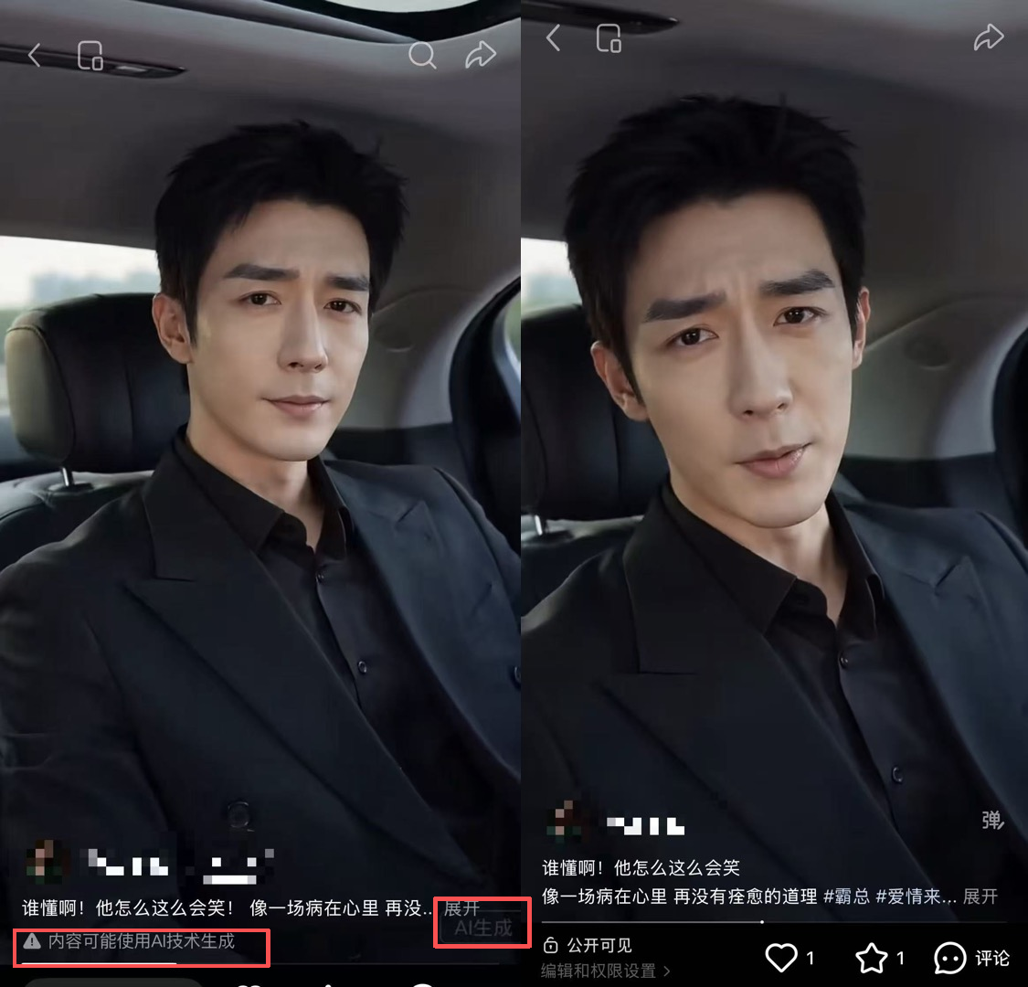 从当前各平台的内容标注规范效果来看,形式不统一、不清晰显著的问题仍然存在。以“AI霸总”等深度伪造的短视频对老年群体的围猎现象为例,北京欣马文创科技有限公司董事长张跃坤向《锋面》记者表示:“强化对标签、标识的分类管理,并且清晰明确地呈现标识尤为重要,目前的标注方式不够清晰,各个平台的标注位置和方式也不统一,很容易误导用户,尤其是未成年人、老年人等特定群体。”