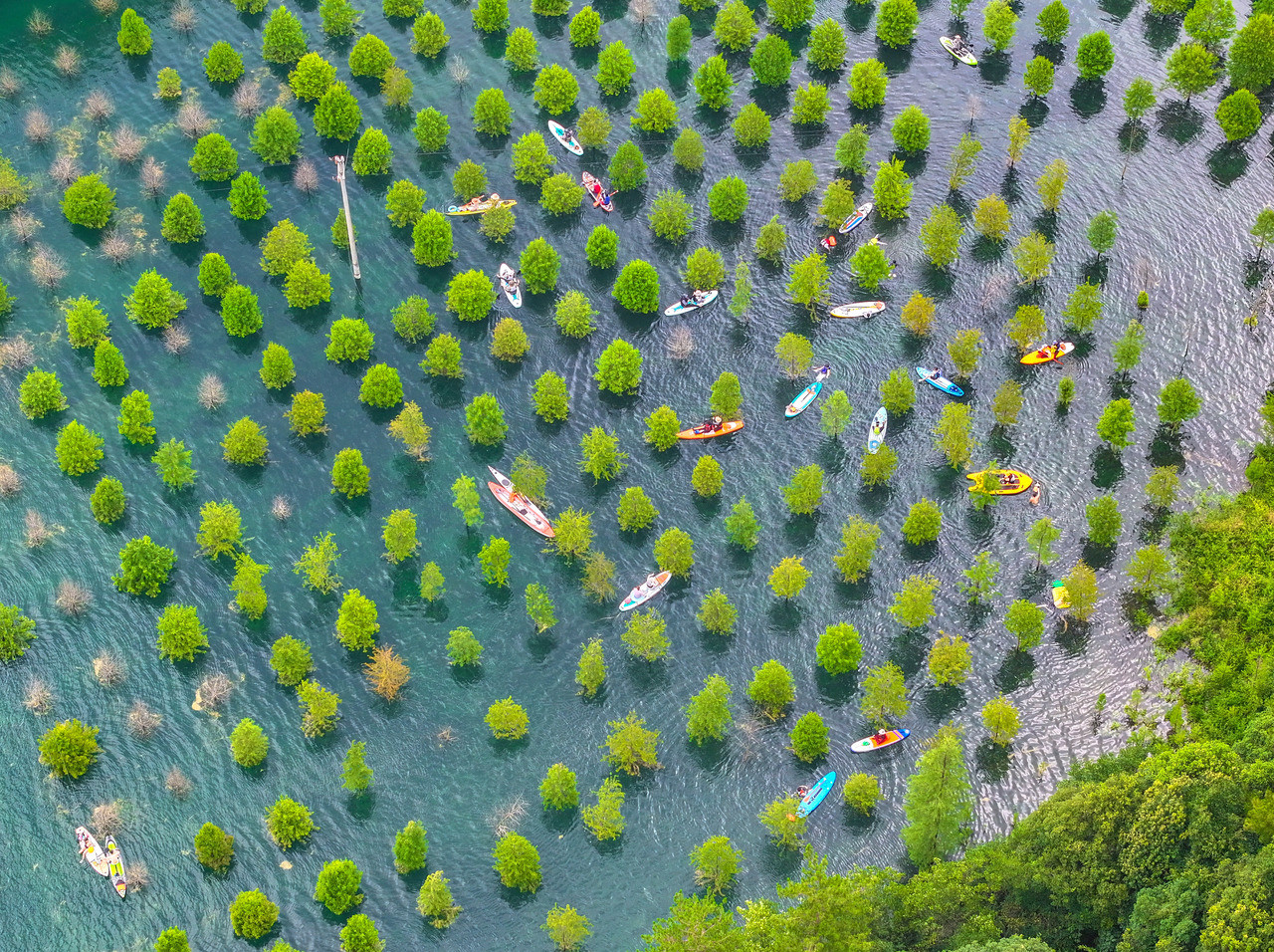 在湖州,位于安吉县孝丰镇夏阳村的小杭坑露营基地集茶园、草坪、溪流、水杉林于一体,被称为“浙江小瑞士”。“树在水中生,人在画中游”,2025年夏天,曾经因为水杉林而出圈的长兴县桃花岕水库被追捧成了“户外桨板圣地”,当地统筹生态保护与开发利用,推动这一“网红”打卡地逐步迈向成熟、规范的户外运动目的地。