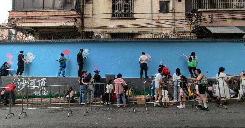 4月11日,天河区沙河街道,街坊共同创作“大湾鸡”墙画