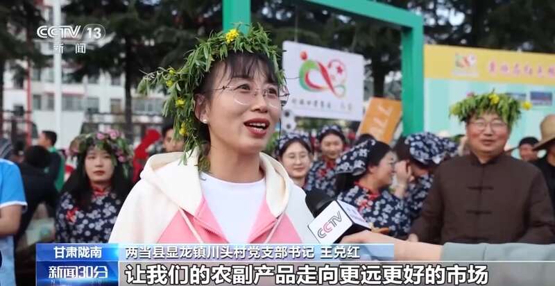 两当县显龙镇川头村党支部书记 王兑红:为了推销我们的农副产品,让农副产品走向更远更好的市场,所以把它带到了“村超”的赛场上,向大家展示。