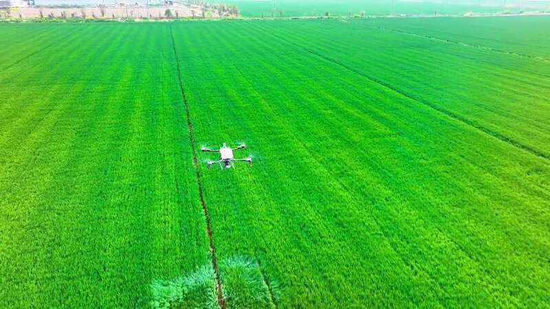 多光谱无人机获取苗情影像信息后,后台智慧农业平台快速分析,即可生成一张“处方图”。随后,另一台施肥无人机对症施肥,精准地将肥料投放到不同区域。
