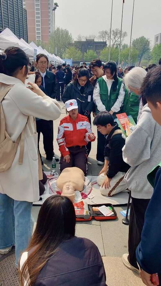 中国青年报客户端讯(中青报·中青网记者 张茜 实习生 李媛英)4月15日是全民国家安全教育日,北京市学院路地区“校地警”平安建设联盟第八届安全文化节在中国农业大学举办。北京市公安局海淀公安分局、北京市海淀区人民政府学院路街道办事处等13家单位在现场设置了32个安全知识宣传展台:特警摆出单兵信息作战系统、防弹衣;消防员开来消防车;戒毒所工作人员展示各类常见毒品模型;红十字会工作人员现场模拟心肺复苏……为北京市学院路地区多所高校的同学们提供沉浸式安全教育体验。