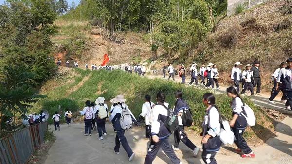 当天清晨7点30分,天刚蒙蒙亮,龙陵县第二中学500多名师生整装出发。他们翻过一座又一座山脊,走过一条又一条山路,徒步20多公里,历经4个多小时,到达松山战役旧址。没有人掉队,没有人喊累,没有人抱怨。因为他们知道,80多年前,有一群比他们大不了多少的年轻人,在这片土地上,用血肉之躯筑起了一道保家卫国的防线。