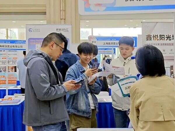 △4月15日,在复旦大学举行的“保租房毕业季进校园”(第五季)首场活动现场,人们在了解房源信息。该活动将于4月至7月持续走进上海高校,上海相关部门和保租房项目企业在现场提供政策答疑、项目推介等“一站式”服务。(新华社记者 刘颖/摄)