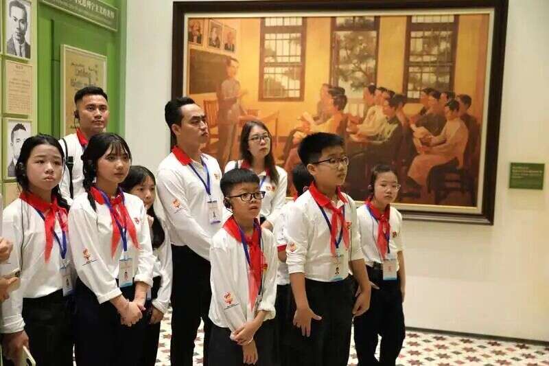 △4月12日,越南青年来华“红色研学之旅”之“不忘初心”研学营团员一行来到广州,先后参观越南青年革命同志会旧址、走访团一大纪念馆、瞻仰范鸿泰墓等代表中越深厚友谊的红色史迹。在现场讲解中,大家重温历史,追忆那段见证中越“同志加兄弟”深厚情谊、激情燃烧的红色岁月。(中青报·中青网记者 陈剑/摄)