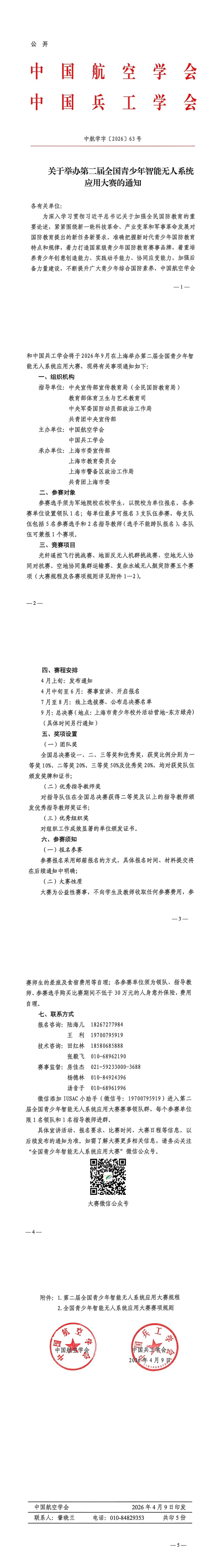 科技赋能国防,青春逐梦前行!为深入贯彻落实新时代全民国防教育工作要求,聚焦新一轮科技革命、产业变革与军事革命发展需求,着力培育青少年创新创造、实践动手与协同应变能力,夯实国防科技后备人才基础,打造国家级青少年国防教育赛事品牌,2026年第二届全国青少年智能无人系统应用大赛正式启动!