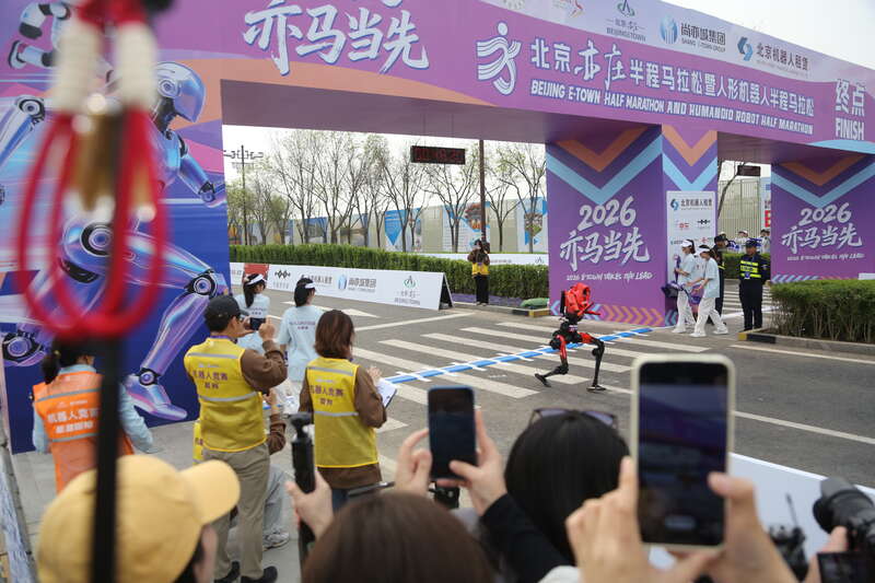 机器人的确更聪明了。工程师没有像去年那样同在赛道上陪跑,而是让机器人成为绝对的主角。在全长21.0975公里的赛道内,机器人要跑过平地、坡道、弯道、狭窄路段等10余种地形,过12个左转道、10个右转道,还要5处变窄路段、1处路岛障碍,极大考验动力控制、环境感知、突发应对等能力,并非简单地“跑步表演赛”。