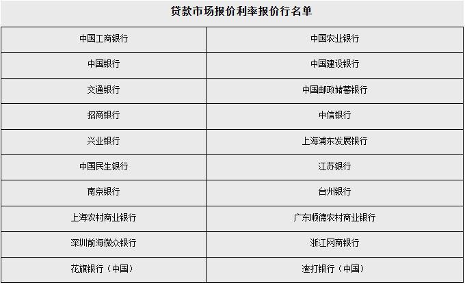 3月31日,央行发布全国银行间同业拆借中心受权发布贷款市场报价利率报价行名单称,根据中国人民银行公告〔2019〕15号要求,全国银行间同业拆借中心受权发布贷款市场报价利率(LPR)报价行名单如下: