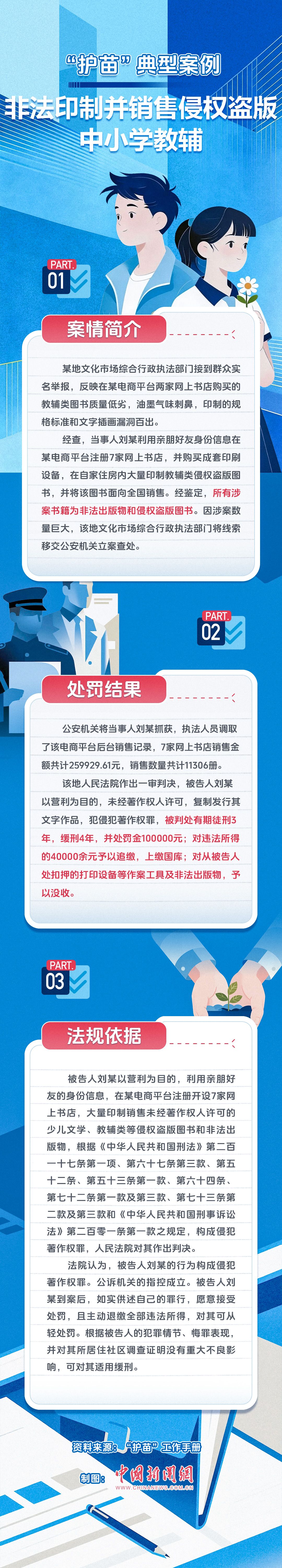 群众举报网购的少儿教辅类图书质量低劣疑似盗版,经查,当事人刘某大量印制教辅类侵权盗版图书,并将该图书面向全国销售。最终当事人因侵犯著作权罪被判处刑罚。