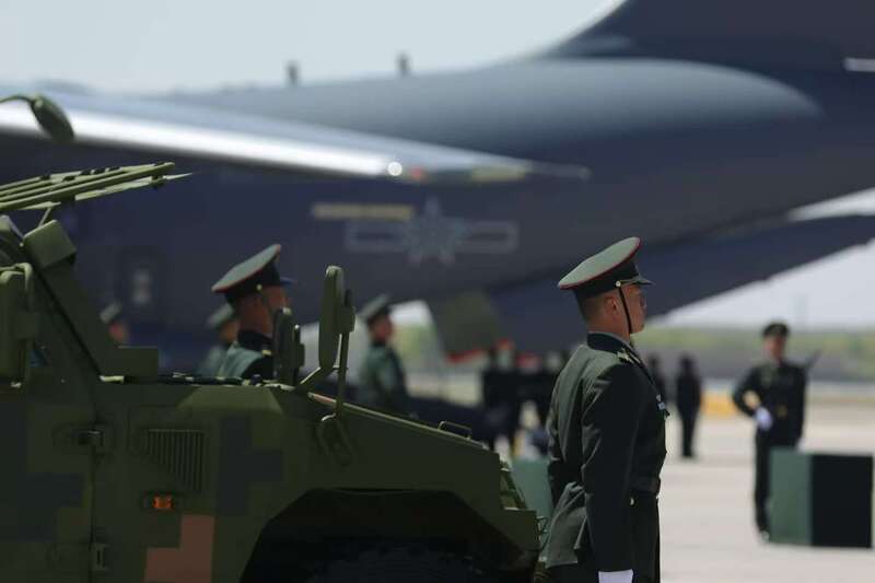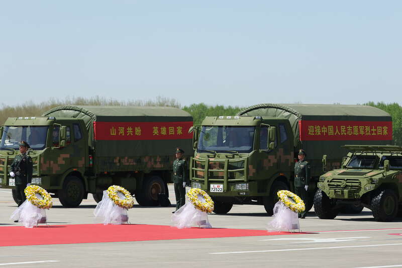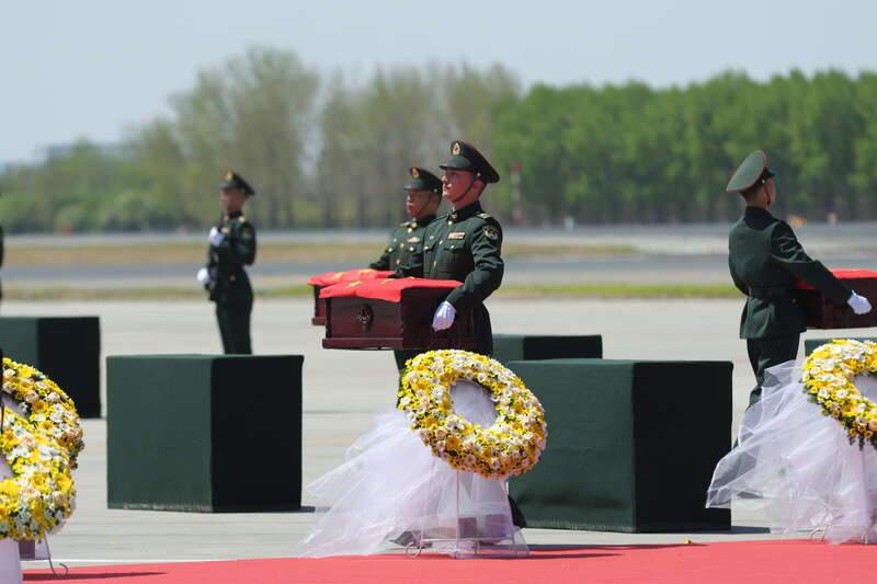 4月22日,沈阳桃仙国际机场,第十三批在韩中国人民志愿军烈士遗骸迎回仪式现场。 王文宾/摄