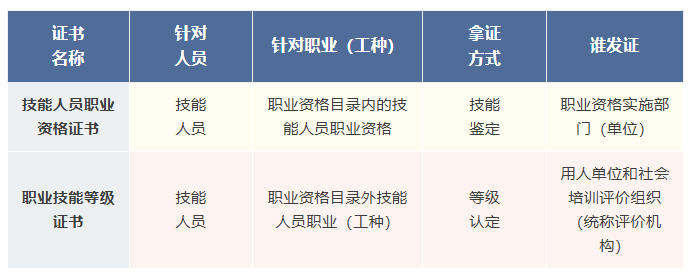 一个是技能人员职业资格证书