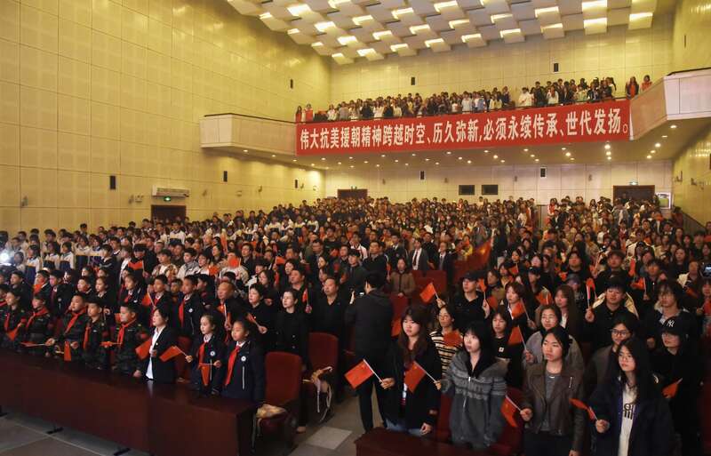 中国青年报客户端讯(中青报·中青网记者周围围)4月20日下午,在第十三批在韩中国人民志愿军烈士遗骸即将归国安葬的特殊时刻,来自辽宁丹东毛岸英学校、江苏泰兴根思实验学校、河南许昌杨根思小学的32名少先队员和专程来丹东参加纪念活动的各界代表、港澳台师生代表齐聚辽东学院,上了一堂“战火中的书信”沉浸式队课。在泛黄信纸与深情诵读中,向英雄先烈致以最诚挚的追忆与致敬。
