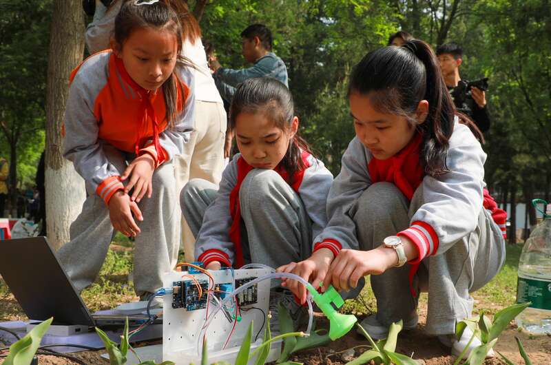 在丰台,不同学校正探索新的课堂模式:北京市丰台区第五小学新发地分校的孩子们,结合长期户外鸟类观测经验,自主设计并3D打印了“数智鸟巢”,贴合鸟类栖息习性,以巧思践行生态保护理念;北京市第十二中学附属实验小学的孩子们结合气象知识,持续观察植物生长变化,借助传感器实测土壤温湿度,让数学、生物、物理、信息技术等多学科知识在实践运用中融会贯通;北京市丰台区建华实验学校的孩子们实地监测公园环境,记录温湿度、风速等数据,分析花粉浓度影响因素,自主研发了花粉浓度探测仪,并制作数据热力图面向市民科普分享,用知识守护大家的健康……