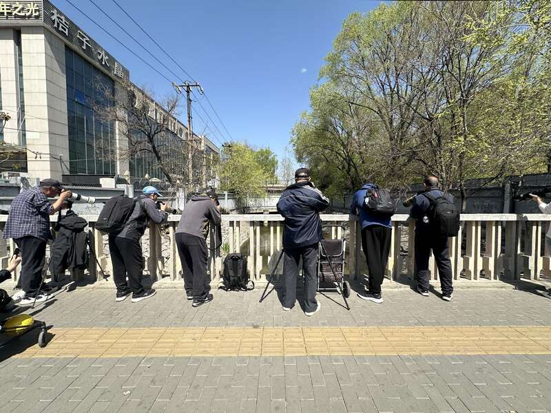 “这是拍啥呢?每次路过都看到这么多人,都成朝阳北路‘一景’了!”过往行人不时被这“大阵仗”吸引,驻足上前询问,或也拿出手机拍上两张凑热闹。而这里更多的,是常年蹲守拍翠鸟的摄影“老兵”。