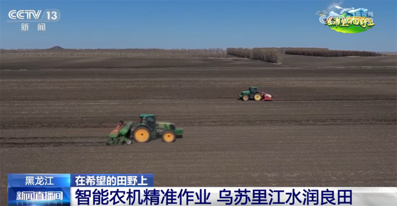 黑龙江:智能农机精准作业 乌苏里江水润良田