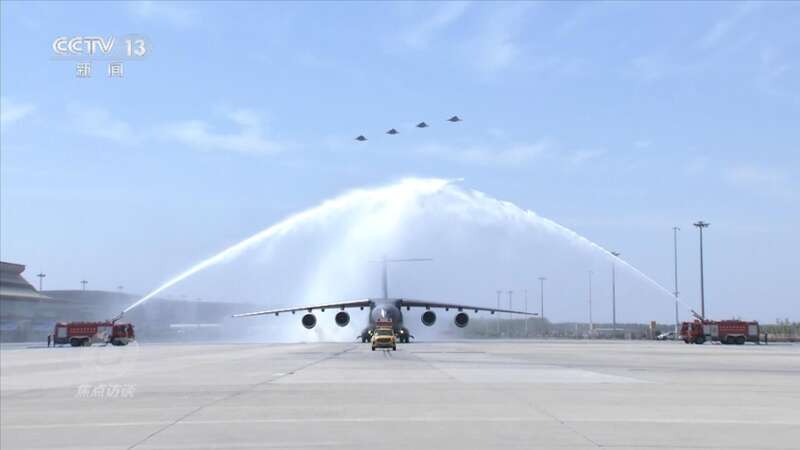 这是运-20B运输机首次执行接迎任务,呼号“荣归50”,代表1950年出征的英雄们光荣回家。