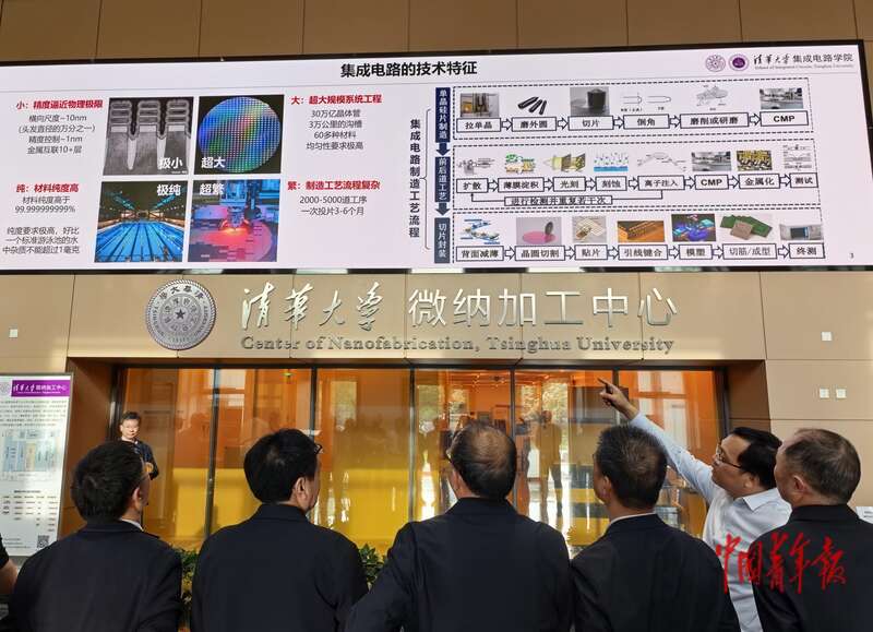 4月25日,北京,清华大学微纳加工中心,工作人员正在给前来参观的来宾介绍相关情况。中青报·中青网 陈剑/摄