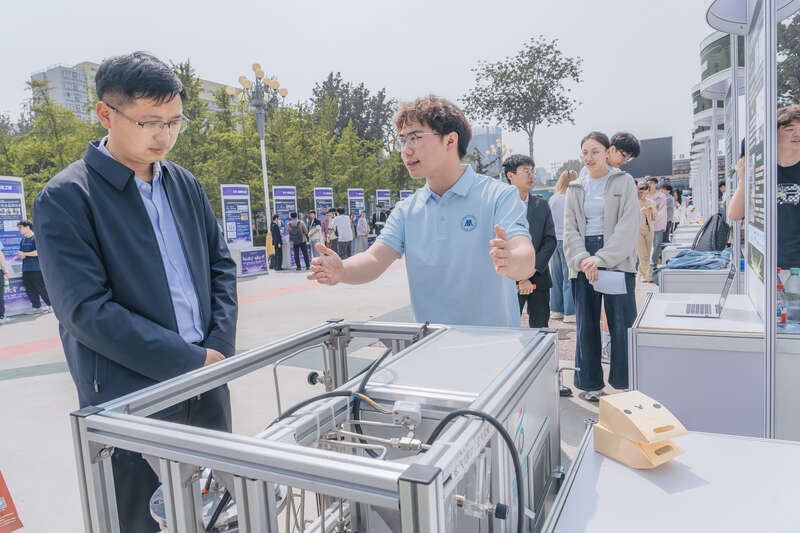 中国青年报客户端讯(中青报·中青网记者 周呈宣)4月24日,北京科技大学举办以“钢筋铁骨 敢挑敢创”为主题的五四科技游园会暨“摇篮杯”优秀科创作品展。近百个学生科创项目集中亮相,通过实物展示、路演答辩等形式,生动展现北科大深厚的科创育人底蕴与新时代学子矢志创新的青春风采。