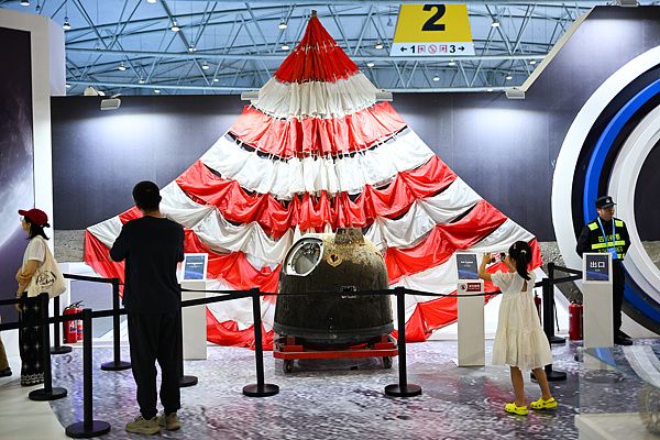 2026年4月26日,四川省成都市,第11个中国航天日之际,航天科普系列展览在成都高新区会展中心举行。图为嫦娥六号返回舱实物展出。