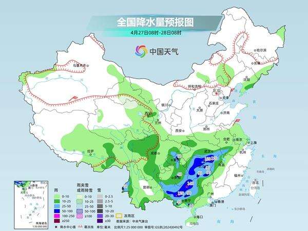 中央气象台预计,今天,青海北部、甘肃河西等地部分地区有雨夹雪。江汉东部、江南北部和西部、西南地区东部、华南西部以及川西高原、云南西南部、西藏东南部等地部分地区有中到大雨,其中,湖北东南部、江西西北部、湖南中北部和西部、广西北部西部和东南部等地部分地区有暴雨,局地大暴雨。