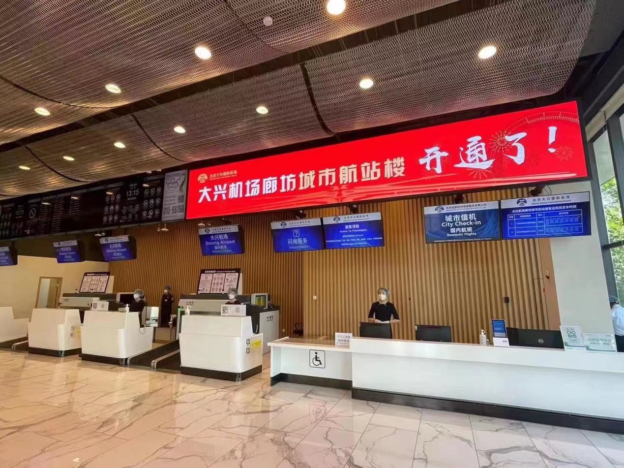 6月25日,大兴机场廊坊城市航站楼正式启用。这是继固安、涿州城市航站楼之后,大兴机场启用的第三座跨省异地城市航站楼,也是首次在地级市设立城市航站楼。