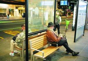 人们在新西兰奥克兰一处公交车站候车。 新华社/图 据路透社消息,新西兰政府周一宣布,该国将从15日午夜起取消所有剩余新冠防疫限制。
