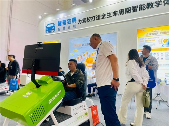 在展会上,木仓科技携其最新款的智能驾驶模拟器——阿尔法幻影亮相。这款模拟器作为全新一代智慧教学工具,其核心部位采用真车配件,通过高精三维建模深度模拟真实驾驶环境。参观者们纷纷体验这款模拟器,亲身感受其带来的沉浸式学车体验。阿尔法幻影的逼真场景和精准操作反馈,让参观者们仿佛置身于真实的驾驶环境中,深刻感受到了智慧驾培的魅力。