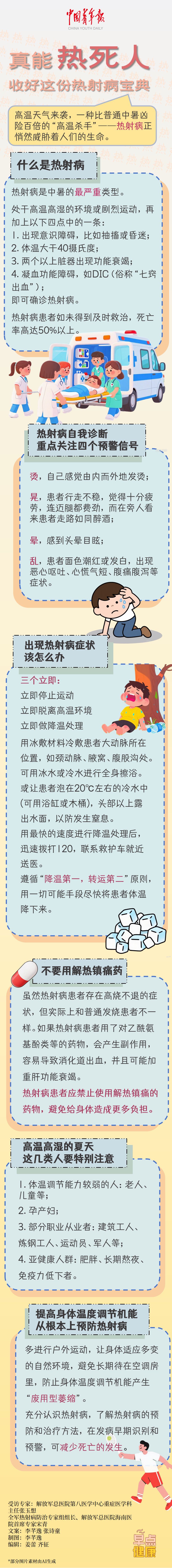 今天小暑。盛夏的热浪,不仅使身体感到不适,更隐藏着致命的健康危机。热射病,不是普通中暑。热射病起病急、进展快,短短几小时内即可引发多器官衰竭,死亡率超过50%,堪称夏季的“隐形杀手”。然而,它又完全可防可控。识别预警信号(如高热、意识不清)、迅速有效降温并立即送医是救命关键。了解它,才能守护盛夏安全。(中青报·中青网记者 张诗童 实习生 李芊逸)