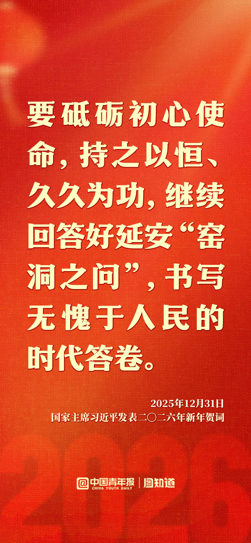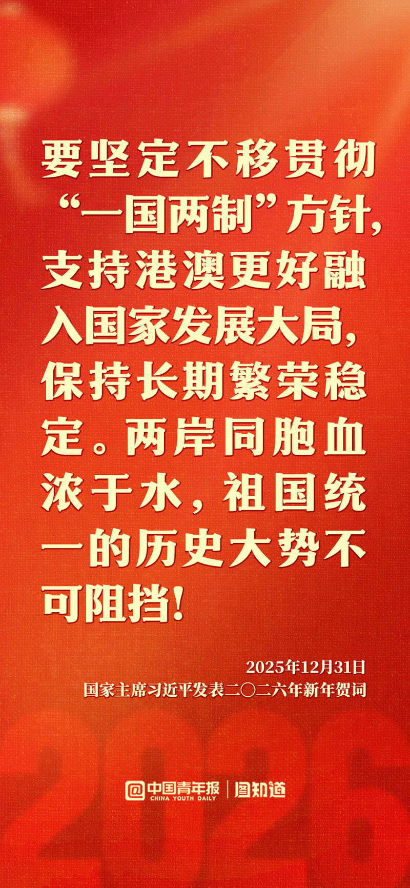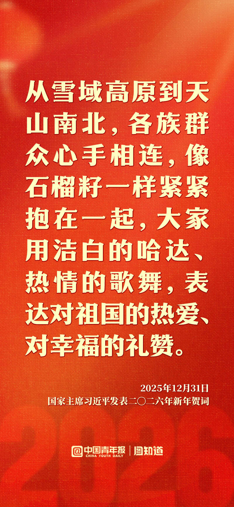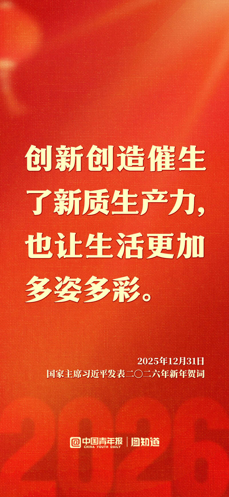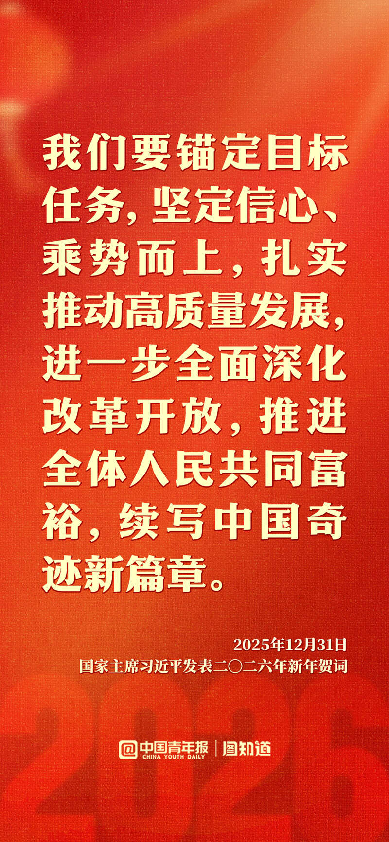 中国青年报客户端 | 2025-12-31 22:30新年前夕,国家主席习近平发表二〇二六年新年贺词。“每个‘小家’热气腾腾,中国这个‘大家’就蒸蒸日上。”家国共此时,让我们带着这份温暖与力量,携手奔赴2026。