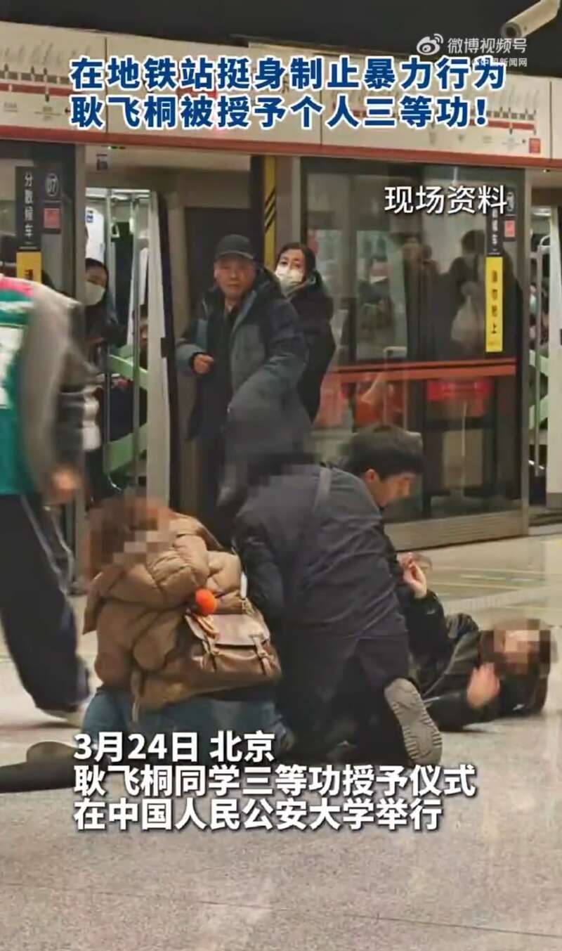 中国人民公安大学学生地铁制止施暴被记功