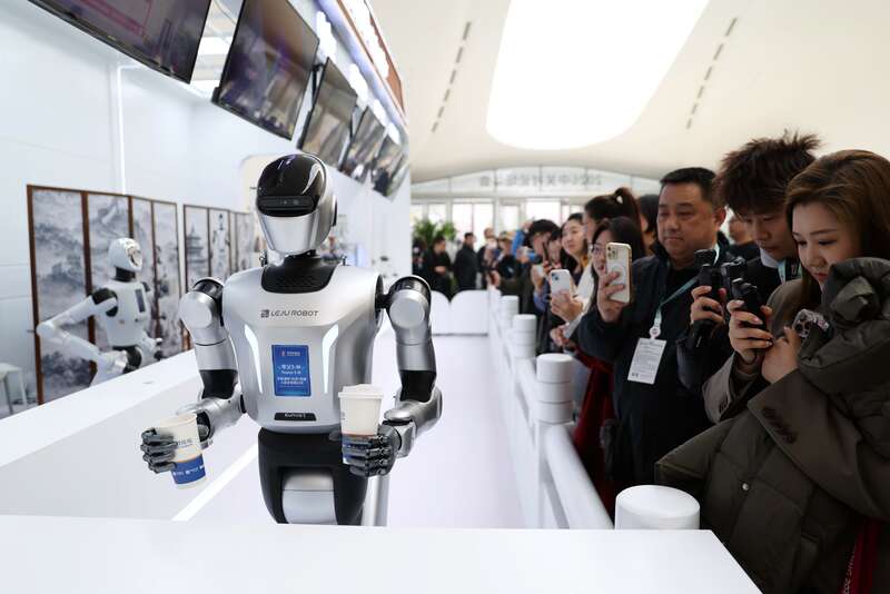本届论坛年会“机器人浓度”再创新高,多种类、多用途的具身智能机器人融入论坛场景,提供咨询引导、科技展示、互动交流等多元化服务。