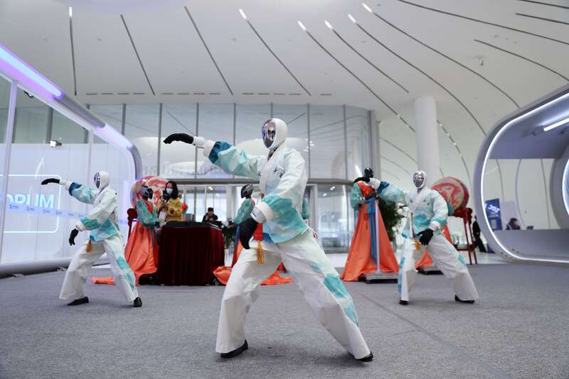 △机器人乐队与舞蹈机器人联袂献上精彩表演。中新社记者 王紫儒 摄