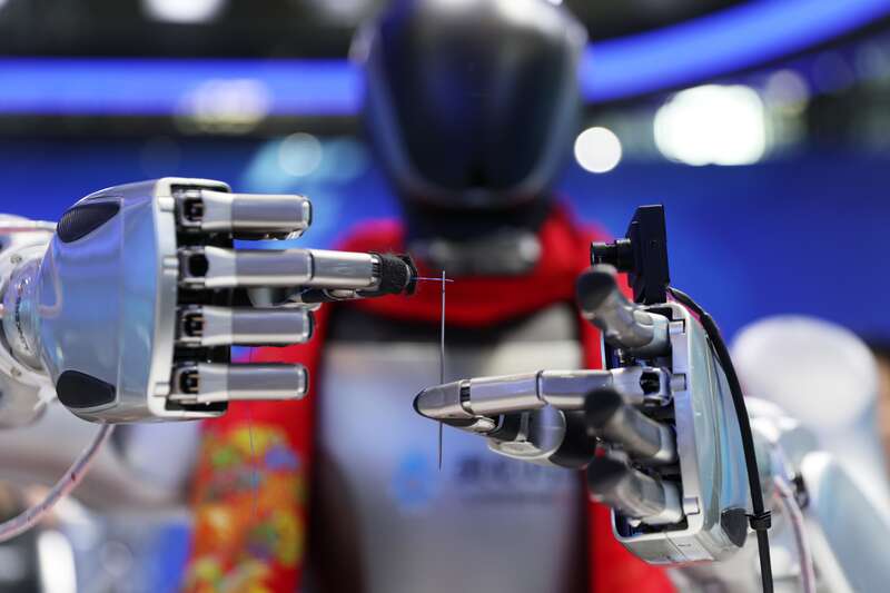 △机器人进行穿针引线。中新社记者 王紫儒 摄