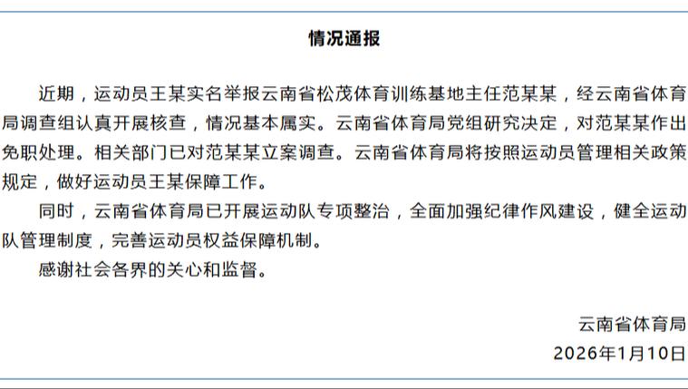 云南体育局通报亚运冠军举报被索要奖金:情况基本属实