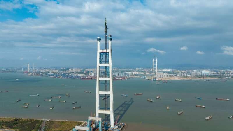 342米!世界最高双层悬索桥主塔亮相珠江口