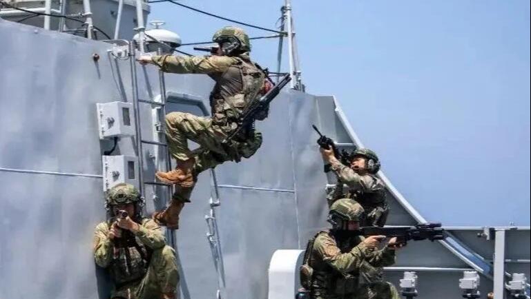 海军第48批护航编队唐山舰开展反恐反海盗演练