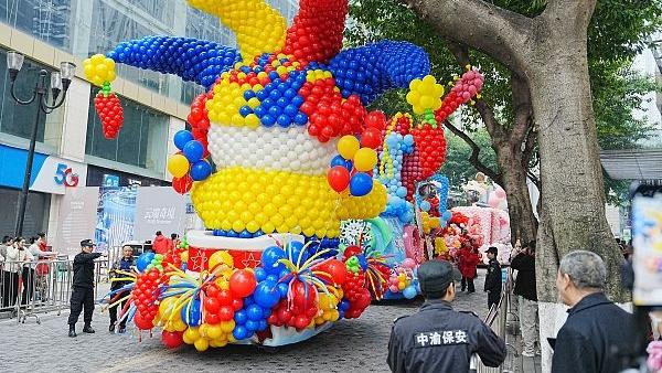 重庆解放碑艺术巡游热闹非凡