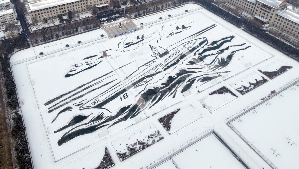 千余师生雪地共绘“福建舰” 哈工大上演硬核浪漫