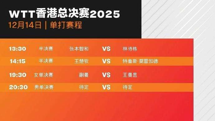 WTT香港总决赛首日赛程公布 国乒出战6场