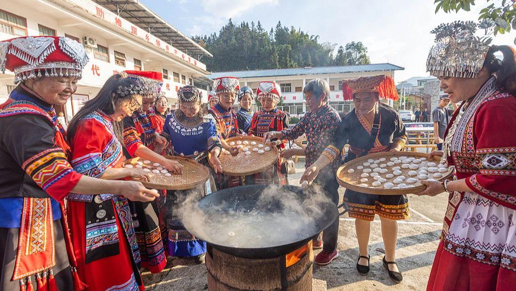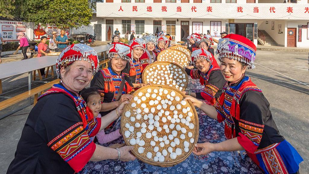 浙江武义:打糍粑做米馃 市民体验传统习俗过冬至