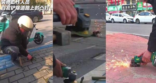 “希望更多的人加入进来!”装修工作人员利用手上的工具,自发铲除道路上的凸钉。