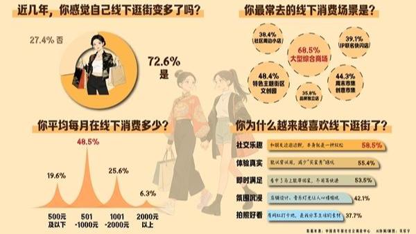 超七成受访青年感觉线下逛街变多了
